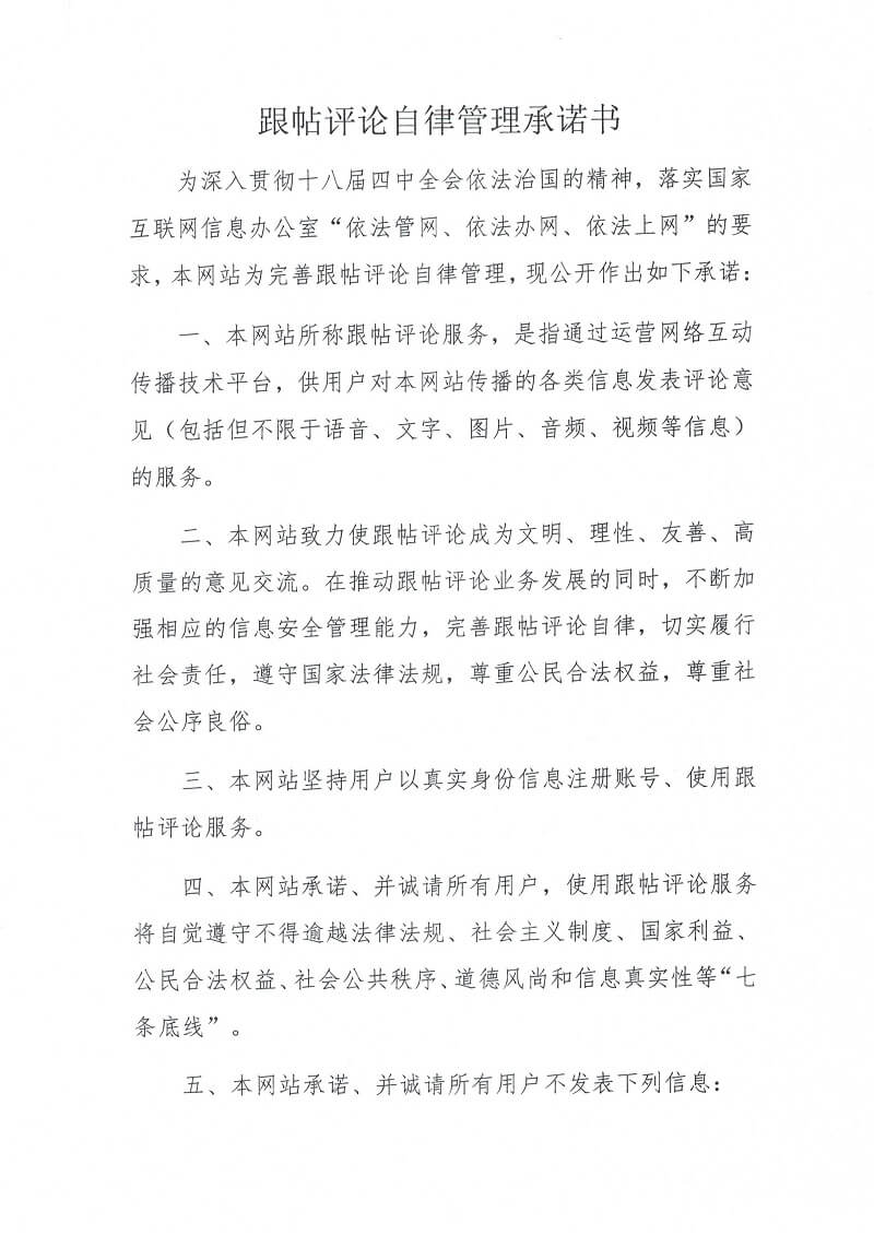 》 跟帖評論自律管理承諾書
