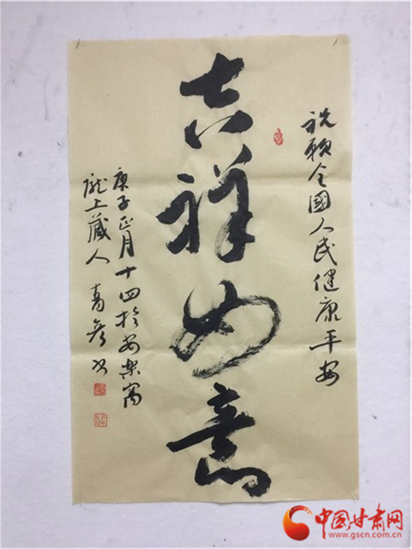 中國甘肅網(wǎng)2月12日訊(本網(wǎng)記者 張?zhí)m琴 張玉芳)2020年新春,面對(duì)突如其來的新冠肺炎疫情,全國人民正在以必勝的信心全力打贏這場(chǎng)沒有硝煙的戰(zhàn)爭(zhēng)。翰墨傳情,為抗疫助力。2月11日,由甘肅省文聯(lián)主辦,甘肅省文聯(lián)所屬文藝家協(xié)會(huì)、中國甘肅網(wǎng)承辦的甘肅文藝界戰(zhàn)“疫”主題作品展播活動(dòng)正式啟動(dòng)。我省12位書法大家揮毫潑墨,這些作品為所有奮戰(zhàn)在抗疫一線和防控疫情工作的平凡天使加油鼓勁,祈禱祝福,用文藝凝聚起抗擊疫情的強(qiáng)大精神力量,為我省防控疫情宣傳助力,受到了社會(huì)各界的贊譽(yù)。