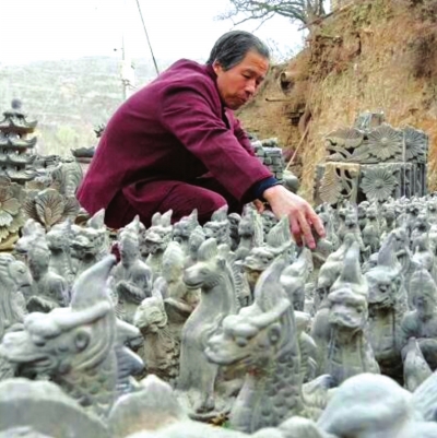 劉泉出生在泥塑(脊獸制作)世家,到他這里已是第四代傳人,他從小喜歡這一行,堅持制作泥塑、脊獸40余年,該項技藝已申請非遺。