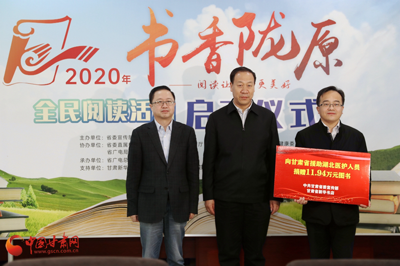 啟動儀式上,省委宣傳部副部長、省新聞出版(版權(quán))局局長王成勇宣布2020年“書香隴原”全民閱讀活動正式啟動。省委宣傳部聯(lián)合讀者集團新華書店飛天傳媒股份有限公司通過省衛(wèi)生健康委,向全省796名支援湖北醫(yī)護人員贈送了價值11.94萬元的圖書。省內(nèi)10家出版社的相關(guān)負責人通過中國甘肅網(wǎng)現(xiàn)場直播為現(xiàn)場嘉賓、廣大網(wǎng)友推介優(yōu)秀甘版圖書。