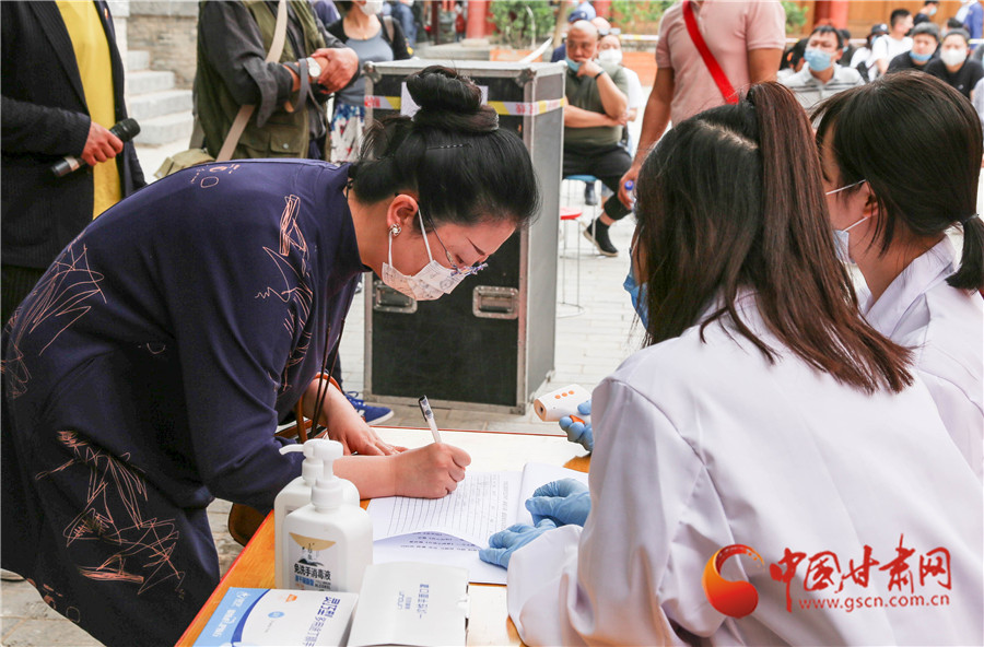 現(xiàn)場觀眾經(jīng)工作人員驗證、測溫、登記后予以放行入場
