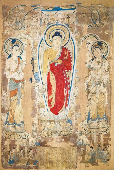 唐代中期,9世紀,絹本設(shè)色,高101.6厘米,寬58.5厘米,英國不列顛博物館藏