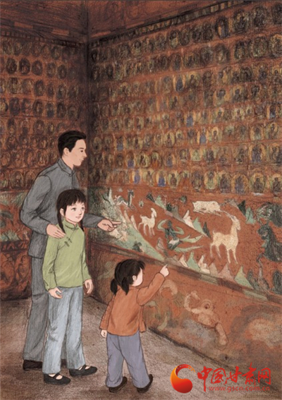 “希望小讀者們能從中感受到藝術(shù)的魅力和愛國奉獻(xiàn)的精神。希望他們能通過這本書,去了解那段歲月,那些人,那些事。有一天能去看看那里的千年歷史,去感受一扇扇窟門背后的絢爛無聲,去了解那里無數(shù)人的勇氣、信仰、堅(jiān)守……”趙劍云這樣寄語小讀者。