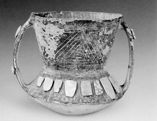 人形三角折帶紋雙足罐