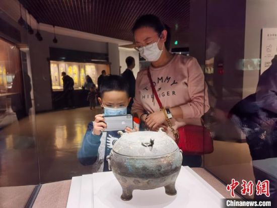 2月17日,甘肅省博物館迎來春節(jié)7天假期中的最后一波游客。圖為當?shù)孛癖娫谡箯d參觀?!堟骸z