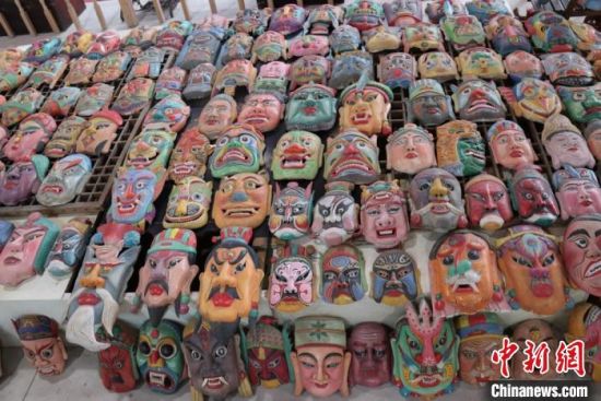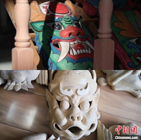中新網(wǎng)蘭州2月20日電(閆姣) 近日,陳列于蘭州市七里河區(qū)一民俗文化館中,數(shù)量眾多、場面震撼的數(shù)千儺面具引起網(wǎng)友關(guān)注。不少網(wǎng)友調(diào)侃面具上色前后稱,“這才是無效化妝和有效化妝的強(qiáng)烈對(duì)比。”
