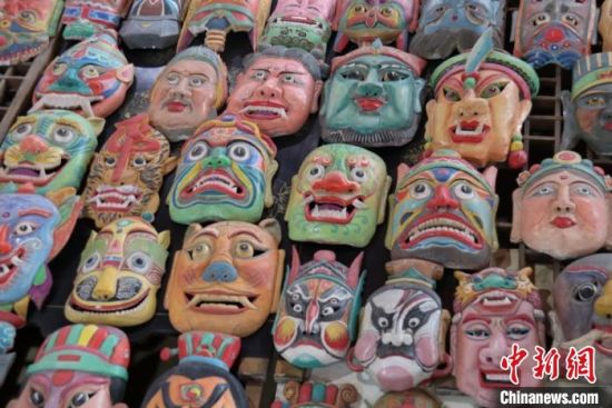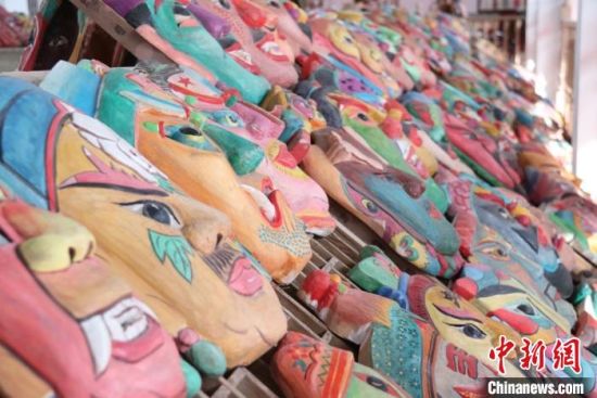 “玉面狐貍”“長須鬼神”“獠牙青面”……中新網(wǎng)記者走訪該館時(shí)看到,五顏六色、形狀各異的數(shù)千面具極具“復(fù)古感”,神怪妖精或彪悍猙獰,或和藹慈祥,輪廓清晰,形象鮮明。置身其中,彷佛回到古人穿戴面具,跳動(dòng)儺舞,舉行祛災(zāi)納祥儀式的場景中。