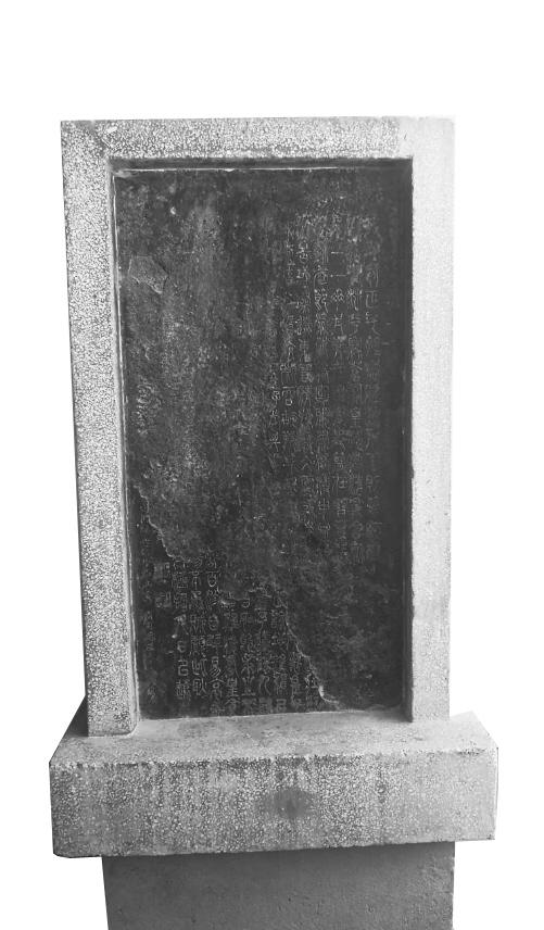 和文化宮的其他幾方大碑比起來,這方石碑不算大,碑面黑黑的,這是人們制作拓片時(shí)留下了墨。碑面風(fēng)化剝落得比較嚴(yán)重,只剩下右上方和左下方兩部分,風(fēng)化剝落了大部分,能看清楚開頭和結(jié)尾。成行的字,只有最邊上的落款。
