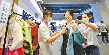 韓國以第五屆絲綢之路(敦煌)國際文化博覽會主賓國的身份,在敦煌國際會展中心搭建了韓國館。館內(nèi)布展形式獨特,展品獨具韓國文化特色,美食、美景、美妝等溢滿韓國風情,讓“各美其美、美人之美、美美與共、天下大同”的美學價值更加深入人心。