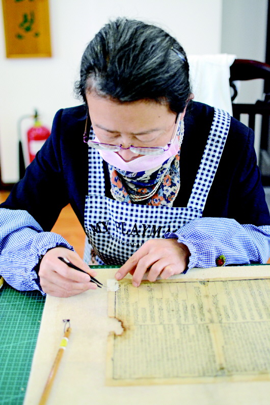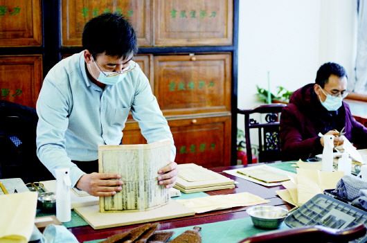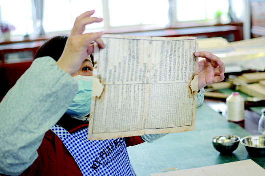 1月5日,記者來(lái)到市圖書(shū)館古籍部,工作人員正在對(duì)破損古籍進(jìn)行全手工修復(fù)。
