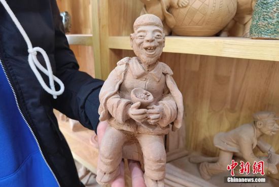 圖為泥塑作品展現(xiàn)人們娛樂(lè)場(chǎng)景。 劉玉桃 攝