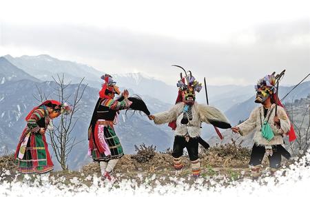 “池哥晝”是居住在文縣鐵樓鄉(xiāng)的白馬人傳承至今的一種民間舞蹈和傳統(tǒng)祭祖活動,為國家級非物質(zhì)文化遺產(chǎn)。“池哥晝”是隴南白馬語的音譯,為山神之意,“晝”表示舞蹈。“池哥晝”因表演時頭戴面具,亦稱“白馬面具舞”。白馬人是古代仇池國白馬氐族后裔,距今有兩千多年歷史。