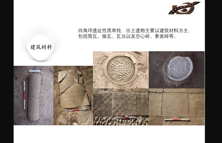 此前勘探發(fā)現(xiàn),四角坪遺址外圍為夯土圍墻,中部為面積約900多平方米的方形夯土臺基,臺基頂部四周有回廊式建筑。經(jīng)過兩年的發(fā)掘,摸清了夯土臺基的形制,發(fā)現(xiàn)了臺基中心較特殊的半地穴式建筑,以及臺基外圍第一排附屬建筑。每組建筑之間有寬約一米的夯土通道連接,建筑周圍散落各種建筑構(gòu)件,如板瓦、筒瓦、瓦當、空心磚等。通過考古發(fā)掘顯示,四角坪遺址建筑體量巨大,等級分明,格局規(guī)整對稱,是秦帝國時期代表國家意志的禮制性建筑群。