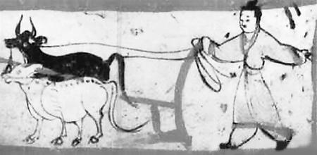 農(nóng)耕圖 (本版圖片均為資料圖,出自嘉峪關(guān)魏晉墓磚畫)