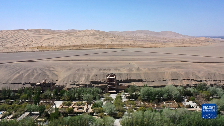 這是4月18日拍攝的莫高窟窟區(qū)(無(wú)人機(jī)照片)。新華社記者 陳斌 攝