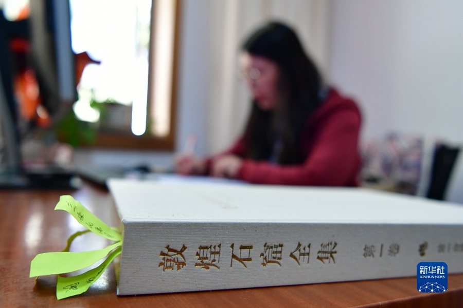4月19日,王嬌在辦公室整理文字資料。新華社記者 陳斌 攝