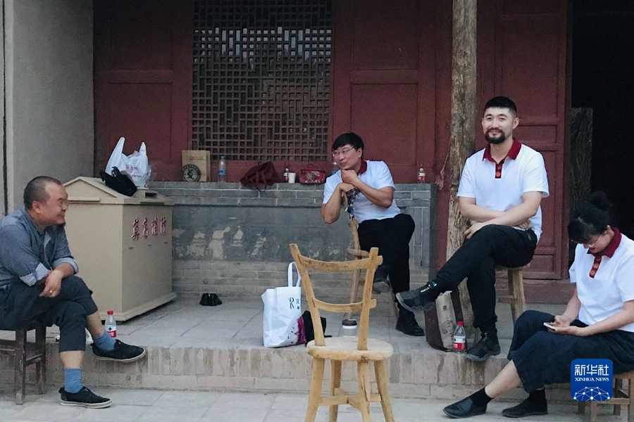 2021年6月,劉小同(右二)和同事一起參加文藝活動(dòng)排練。新華社發(fā)(受訪者供圖)