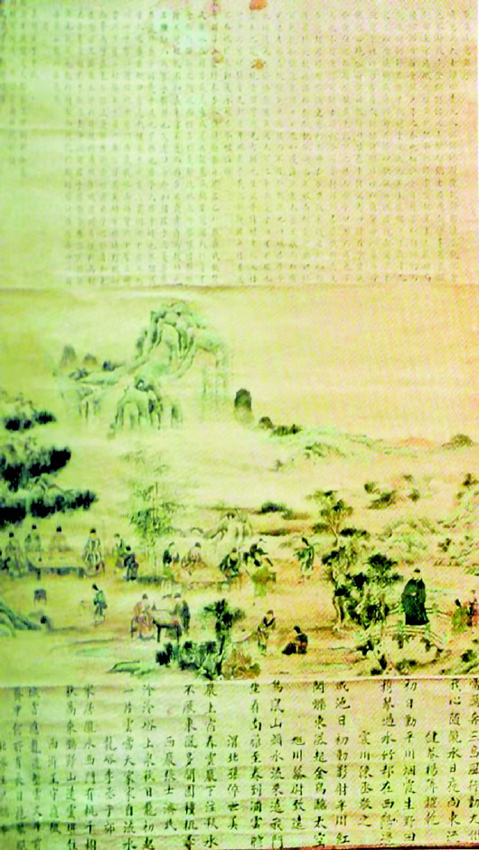 “隴溪九逸”每逢集會(huì),必懸此圖。他們繼承中國(guó)文人優(yōu)良的傳統(tǒng)美德,“居廟堂之高則憂其民,處江湖之遠(yuǎn)則憂其君”,看似醉情山水,實(shí)則壯心不已,制訂鄉(xiāng)約,設(shè)館授徒,為家鄉(xiāng)的文化教育事業(yè)發(fā)揮著余熱。從這個(gè)意義上說,明代秦安“隴溪九逸”正是古代知識(shí)分子憂國(guó)憂民的一個(gè)縮影,亦是那個(gè)時(shí)代的一抹春色。