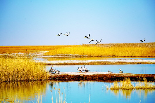 蘇干湖濕地候鳥翻飛。高宏善 陳玉明 攝
