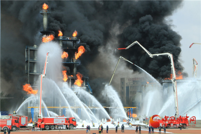 現場,爆炸聲浪一波未平,一波又起,黑煙滾滾夾雜火苗亂竄。在嚴峻考驗面前,消防隊伍采用先進技術壓制火力,發(fā)起總攻。最大程度模擬真實火災場景,達到應對復雜火災考驗的能力。