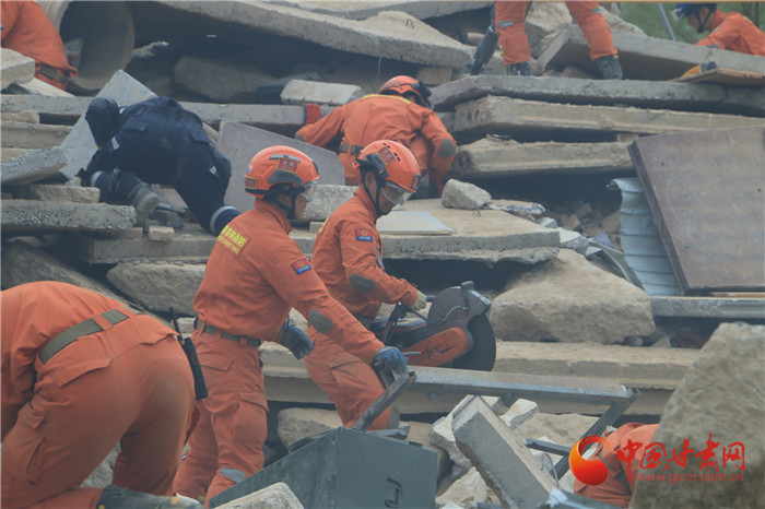 坍塌的房屋,狼藉的廢墟,經歷強震的震中,放眼望去滿目蒼涼,這是實戰(zhàn)演習現場設定的真實畫面。面對災難,在廢墟中屹立的救援旗幟成為群眾的希望。如何在72小時黃金救援期盡最大努力救出傷者?實戰(zhàn)演習現場,專業(yè)消防隊伍和民間應急救援隊伍協同配合,以構建綜合救援體系為目標進行磨合演練。