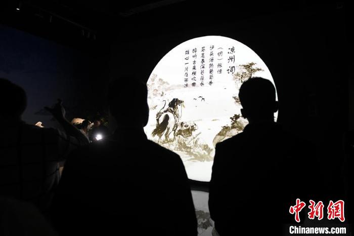 圖為游客在涼州詞館內體驗閱讀古詩詞。 戴文昌 攝