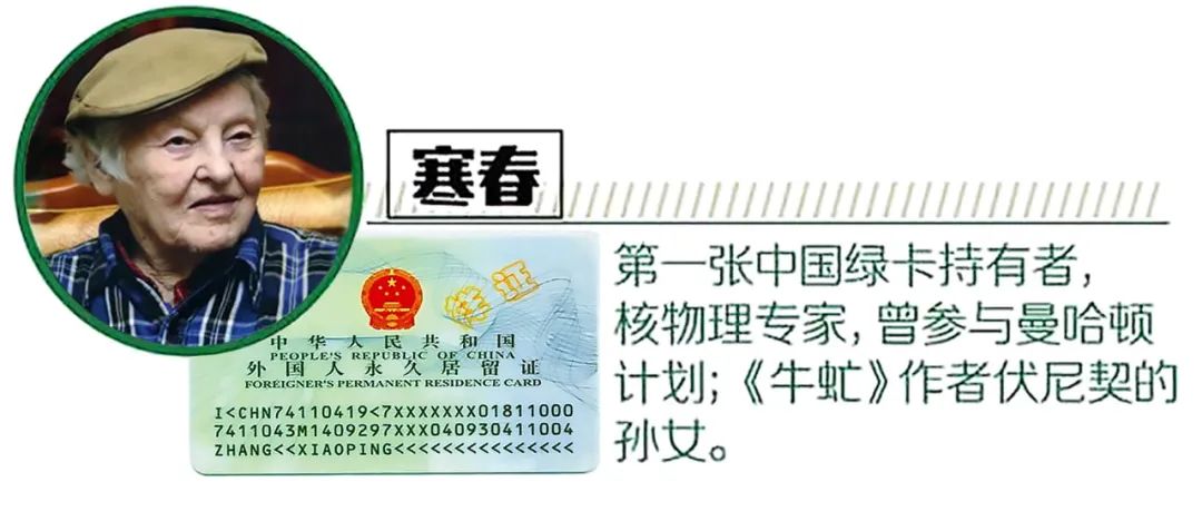 2004年8月15日,《外國人在中國永久居留審批管理辦法》正式頒布,規(guī)定外籍人申請合格者將獲得中國政府頒發(fā)的“外國人永久居留證”,我國正式開始實(shí)施外國人永久居留證管理制度。人們仿照國際慣用說法,稱中國開始實(shí)施“綠卡”制度,中國“綠卡”進(jìn)入2.0時(shí)代。持證者在中國的居留地、住房和就業(yè)皆不受限制,出入中國國境無須再簽證。綠卡不是國籍的變更,但是拿到綠卡的外籍友人在中國出入境,工作、旅行、生活會(huì)更加方便。拿到中國第一張“外國人永久居留證”的是放棄了自己心愛的核物理研究,而且不畏難苦,扎根農(nóng)村,為中國的奶牛改良工作奮斗了一輩子的美國知名核物理學(xué)家寒春。