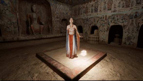 體驗(yàn)過后,游客還能在虛擬演播廳,實(shí)時(shí)拍攝一段真人與洞窟虛擬場(chǎng)景交互的視頻。無論身處何處,打開手機(jī)便能重溫這段“帶得走”的敦煌記憶。
