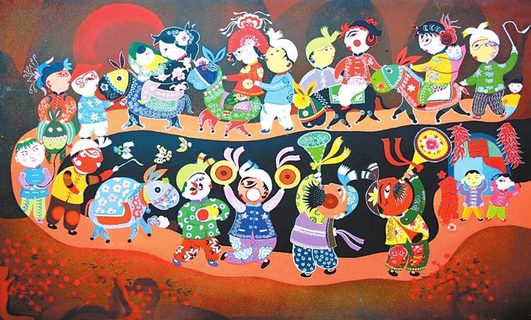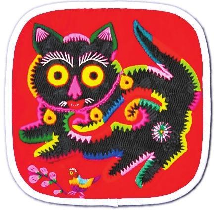華池民間布貼畫是一種古老的民間工藝美術(shù),是隴東文化的重要組成部分。華池拼布創(chuàng)作以粗布為原料,色彩豐富鮮艷,剪貼的邊線明朗整潔,富有木刻版畫的刀木特點(diǎn)。其內(nèi)容多取材于人物、動(dòng)物、花鳥等題材,注重色彩對比,以大紅大紫的色彩,夸張化的描述,追求強(qiáng)烈的直觀效果,講究裝飾性;風(fēng)格浪漫稚拙,渾厚質(zhì)樸,氣韻生動(dòng)。