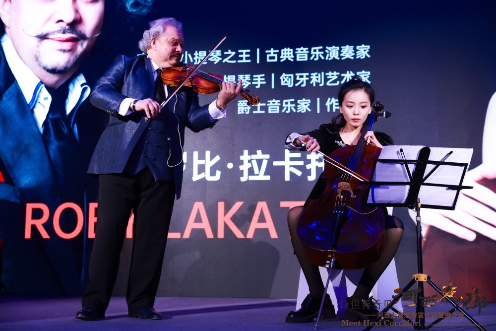 活動(dòng)現(xiàn)場(chǎng),張掖、武威、金昌、酒泉、嘉峪關(guān)5市分別展示當(dāng)?shù)氐奈幕糜钨Y源,呈現(xiàn)地方特色節(jié)目,并與甘肅省簡(jiǎn)牘博物館共同發(fā)布“通關(guān)簡(jiǎn)牘”,發(fā)出邀請(qǐng)“讓世界走進(jìn)河西走廊”。結(jié)合了甘肅特色的各類文藝表演、世界知名小提琴大師羅比·拉卡托斯以及羅馬尼亞藝術(shù)家們帶來(lái)的精彩節(jié)目也在活動(dòng)現(xiàn)場(chǎng)演出。