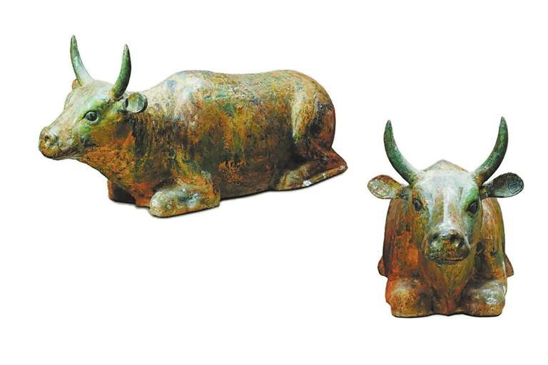 這座鎏金銅牛肌肉線條清晰、流暢,目光炯炯,望向前方。就像休息中的老黃牛聽到了主人的召喚,準(zhǔn)備起身開始勞作。
