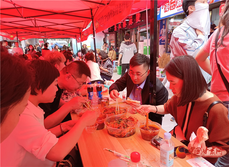 當(dāng)日,甘肅省文旅廳和天水市共同舉辦的“甘肅麻辣燙及特色美食大PK”和“甘肅文創(chuàng)非遺市集展銷”活動(dòng)繼續(xù)吸引大量游客。