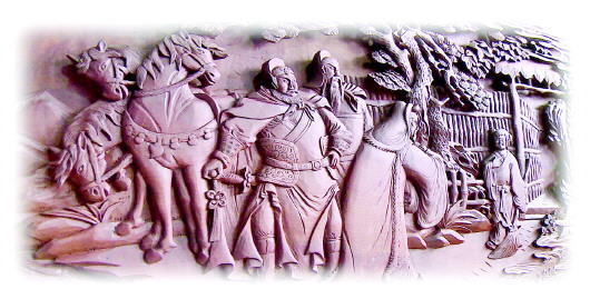 因著榜沙河的滋潤,“民武”木雕擺件大多采用本地質(zhì)地細(xì)密堅韌、不易變形的梨木,所刻作品溫潤而不浮躁,沉穩(wěn)而不輕浮。最具特色的是,在題材選取上極富傳統(tǒng)文人氣息,尤其是施彩擺件,具有較高的藝術(shù)水準(zhǔn)。這些千姿百態(tài)的圖案,將生活場景和神話故事有機(jī)融合在一起,高大悠遠(yuǎn)、古拙秀雅,達(dá)到了“變形不失真,夸張亦傳神”的藝術(shù)境界。