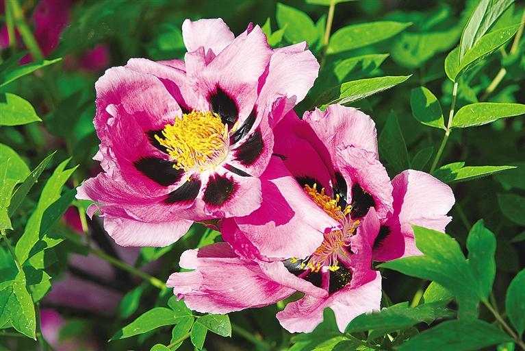 紫斑牡丹在臨夏栽培最普及、群眾基礎最廣泛,家家種植、戶戶栽培,牡丹月里行走,隨處可見。風來,濃香撲鼻,那芬芳,彌漫在角角落落。