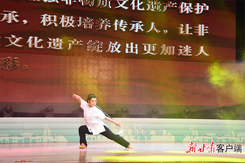 作為華夏文明的重要發(fā)祥地,這里還擁有深厚的文化底蘊和富集的非遺資源:現(xiàn)有國家級非遺項目8項、省級50項、市級180項,各類非物質文化遺產在八千年的歷史中不斷傳承與發(fā)展。活動現(xiàn)場,清水木人摔跤、武山武術、秦州夾板舞等節(jié)目展示了這片文化積淀深厚的黃土地上產生、流傳和發(fā)展的“文化絕活”。