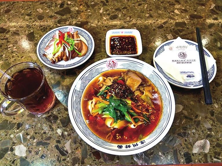 涼州,不僅有悠久的歷史、燦爛的文化,而且有回味無窮的美食。每天中午時(shí)分,位于雷臺(tái)綜合體的古凉韻“三套車”店里,食客絡(luò)繹不絕。從北京遠(yuǎn)道而來的程先生一行四人,特地前來打卡武威的這道特色美食。一碗行面、一盤鹵肉、一杯茯茶的組合,讓他們吃得津津有味。