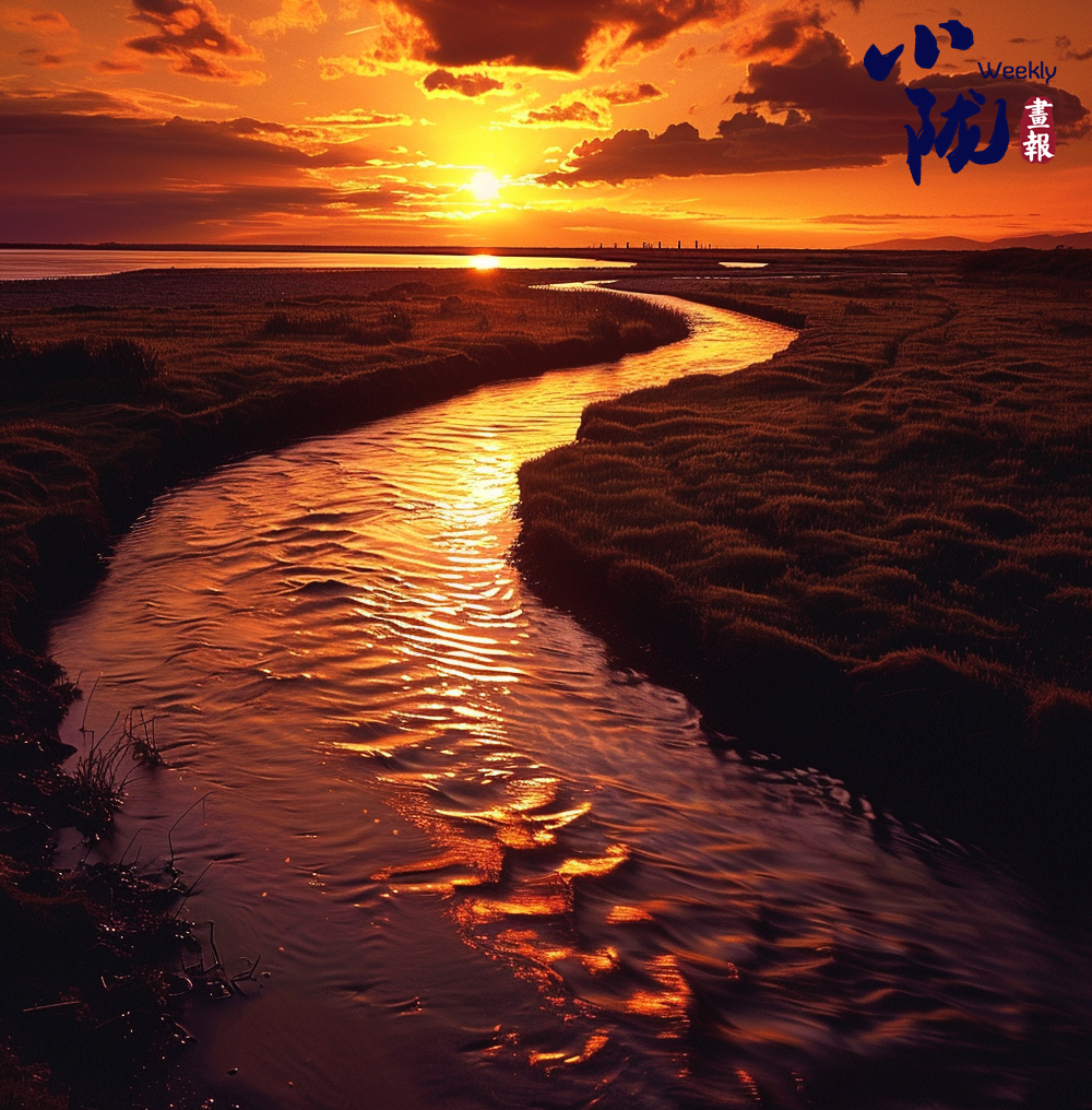 晚霞映紅了半邊天,河水波光粼粼,像染了一抹瑰麗色彩,與遠(yuǎn)處的灌木叢形成了一幅動(dòng)人的畫(huà)卷,那震撼人心的自然之美,只有置身其中才能感知。