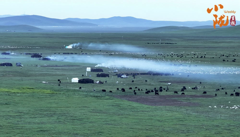 湛藍的天空,翠綠的草原,牛羊遍野,帳篷點綴在草地上......放眼望去,一切都是那么美好,一切都是那么靜謐,一切都是那么祥和。