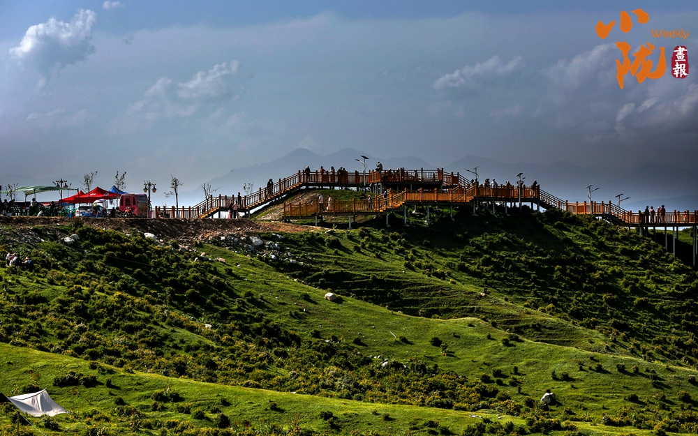 放眼望去,群山連綿,綠意盎然,萬(wàn)千金星灑滿綠毯,牛羊踩著山的脊梁品讀夏日的詩(shī)行,幾朵白云橫臥于山頂,觸手可及。