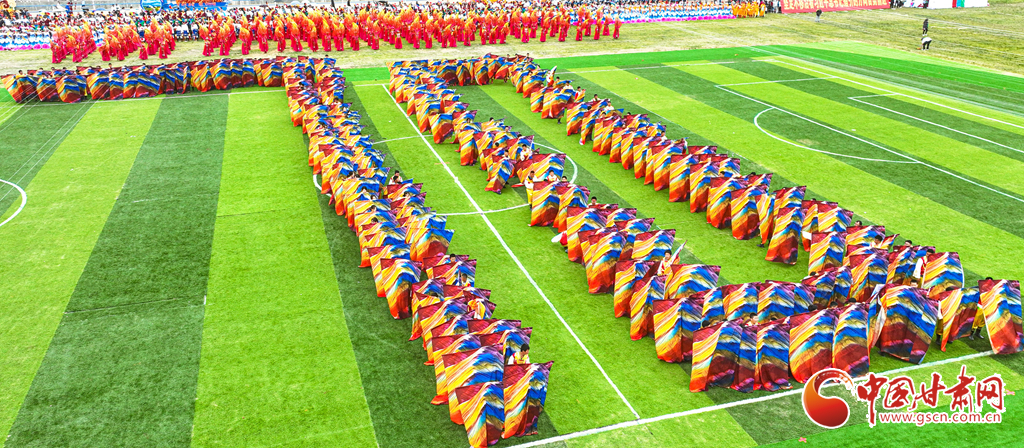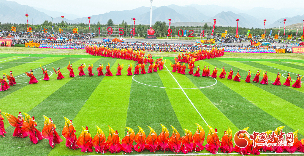 8月13日,甘肅省張掖市肅南裕固族自治縣萬(wàn)名群眾身著節(jié)日的盛裝,齊聚在索朗格賽馬場(chǎng)上,展開(kāi)主題為“感恩奮進(jìn)七十載·同心共富新時(shí)代”的歌舞表演,感謝偉大的中國(guó)共產(chǎn)黨,謳歌美好的新生活。