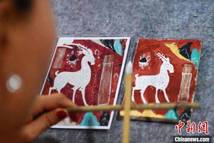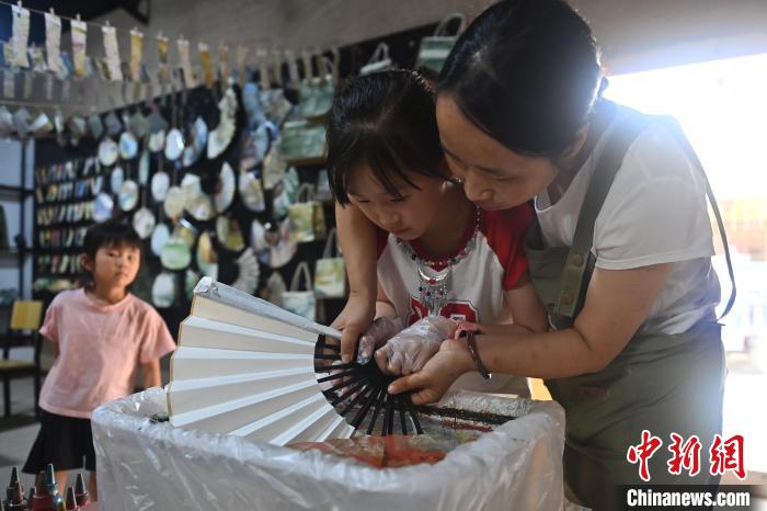 8月20日,甘肅敦煌莫高里工匠村內(nèi),學(xué)員展示研學(xué)成果。工匠村開(kāi)設(shè)了泥板畫(huà)、彩繪、雕塑制作、剪紙、農(nóng)耕體驗(yàn)等課程,現(xiàn)已發(fā)展成為一個(gè)集敦煌文化講堂、壁畫(huà)書(shū)法研習(xí)、美術(shù)設(shè)計(jì)、彩塑制作教學(xué)、篆刻藝術(shù)、傳統(tǒng)釀酒體驗(yàn)、農(nóng)業(yè)產(chǎn)業(yè)發(fā)展等于一體的多功能實(shí)訓(xùn)基地。中新社記者 李亞龍 攝