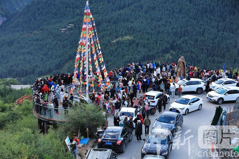 8月19日,游客在扎尕那景區(qū)仙女灘游玩。扎尕那景區(qū)位于甘肅省甘南藏族自治州迭部縣益哇鎮(zhèn),藏語意為“石匣子”,整個景區(qū)平均海拔在3000米以上,四周群山環(huán)抱,山頂云霧繚繞,森林、草原、青稞梯田與獨特的人文景觀互補整合,藏式民居點綴其間,吸引游客前來參觀游玩。中新社發(fā) 陳永剛 攝