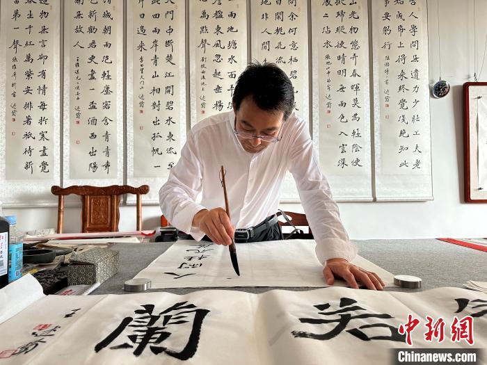 “我從小練習(xí)繪畫,從學(xué)校畢業(yè)后直接回縣里開(kāi)了自己的書畫工作室,現(xiàn)在入駐悅心國(guó)際書畫村,收入還可以。最主要耐得住寂寞,靜下心來(lái)打磨技藝。”“90后”通渭本土?xí)嫾伊茉诋?dāng)?shù)匦∮忻麣?。他說(shuō),書畫在年輕群體當(dāng)中很受歡迎,尤其前來(lái)跟他學(xué)習(xí)的學(xué)生很多。(完)