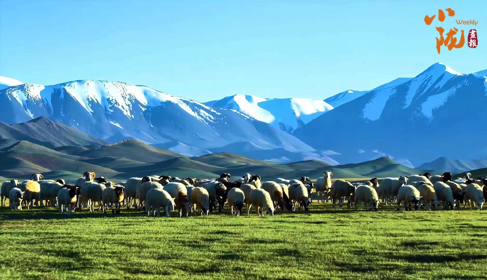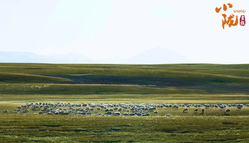 羊群猶如無數(shù)顆珍珠灑落在滿目的金色里,為這片廣袤的大地增添了無限的色彩,使得整個草原動靜相宜。
