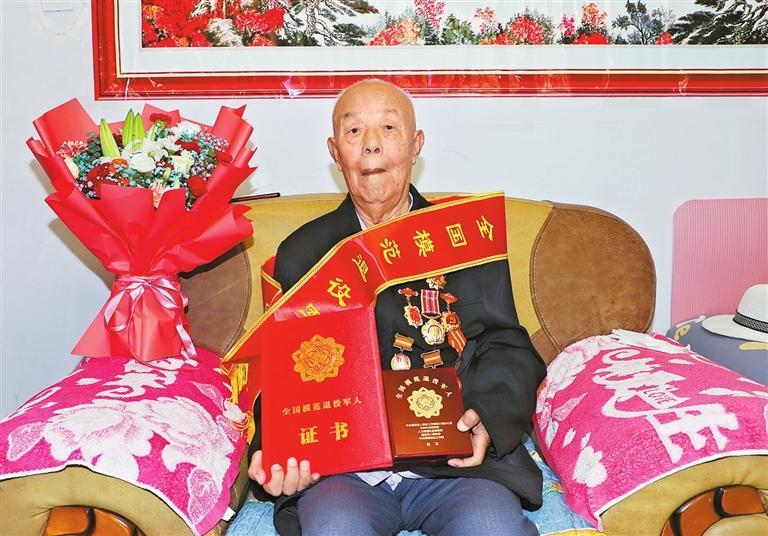 當(dāng)天,平川區(qū)武裝部、退役軍人事務(wù)局的工作人員為胡占學(xué)帶來了“全國模范退役軍人”榮譽證書、勛章和綬帶,并為老人佩戴了勛章。