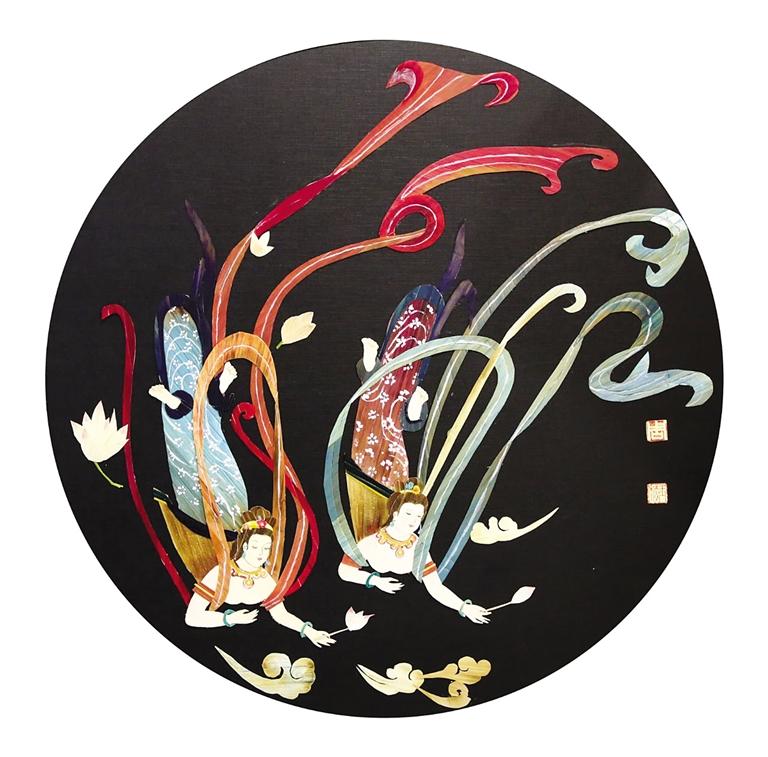 周玉梅曾經(jīng)說(shuō)過(guò),“如果我的生命里沒(méi)有了剪紙、繪畫(huà)這些東西,我的靈魂也將變得枯萎。”憑借著對(duì)繪畫(huà)的熱愛(ài),她的麥稈畫(huà)作品幾乎達(dá)到了爐火純青惟妙惟肖的程度。在展覽現(xiàn)場(chǎng),她的《親情系列之骨肉情深》麥稈作品呈現(xiàn)的是兩只老虎,幼虎憨態(tài)可掬,雌虎一改威嚴(yán)姿態(tài),舐?tīng)偾樯畹?ldquo;老母親”形象活靈活現(xiàn)。在她親情系列的畫(huà)作中,無(wú)論是羔羊、奔馬、老黃牛等動(dòng)物皮毛部分皆用細(xì)如針尖的麥稈粘貼而成,一幅畫(huà)作成千上萬(wàn)根麥稈不僅考驗(yàn)著作者的功力,更考驗(yàn)著作者的耐力。作為甘肅山丹人,畫(huà)敦煌飛天是每一個(gè)甘肅人的情懷。因此,她創(chuàng)作的《飛天》畫(huà)作中,飛天身著彩色飄帶在空中飄逸飛舞,而這正是周玉梅畢生追求的藝術(shù)境界。