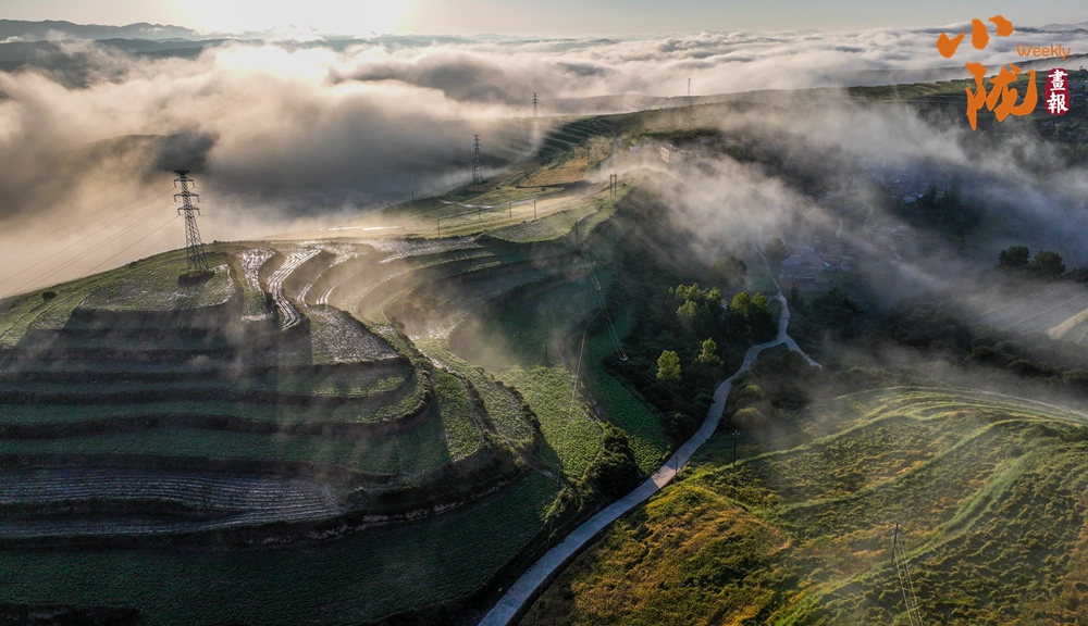 一場秋雨過后,甘南臨潭連綿的群山被云霧籠罩,星羅棋布的梯田上迎來收獲期,稻浪滾滾,美不勝收。