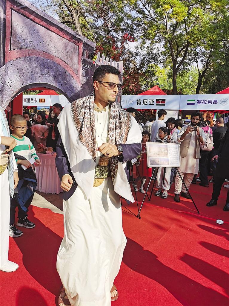 當日下午,記者來到現(xiàn)場看到,中國、馬達加斯加、蘇丹、俄羅斯、德國、也門、斯里蘭卡、印度……各國展臺前人們摩肩擦踵,空氣中彌漫著美食的味道與火熱的激情。身著各國傳統(tǒng)服飾的人群中,滿目都是俊男靚女,讓人恍若置身國際大都會。