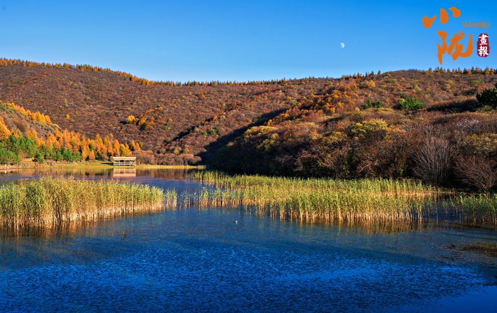 群山環(huán)抱里的朝那湫,水面開(kāi)闊,清澈透明,周?chē)鷮恿直M染,藍(lán)天、蘆葦?shù)褂霸诿鲀舻乃嫔?,恰似一幅絕妙的山水風(fēng)景圖。