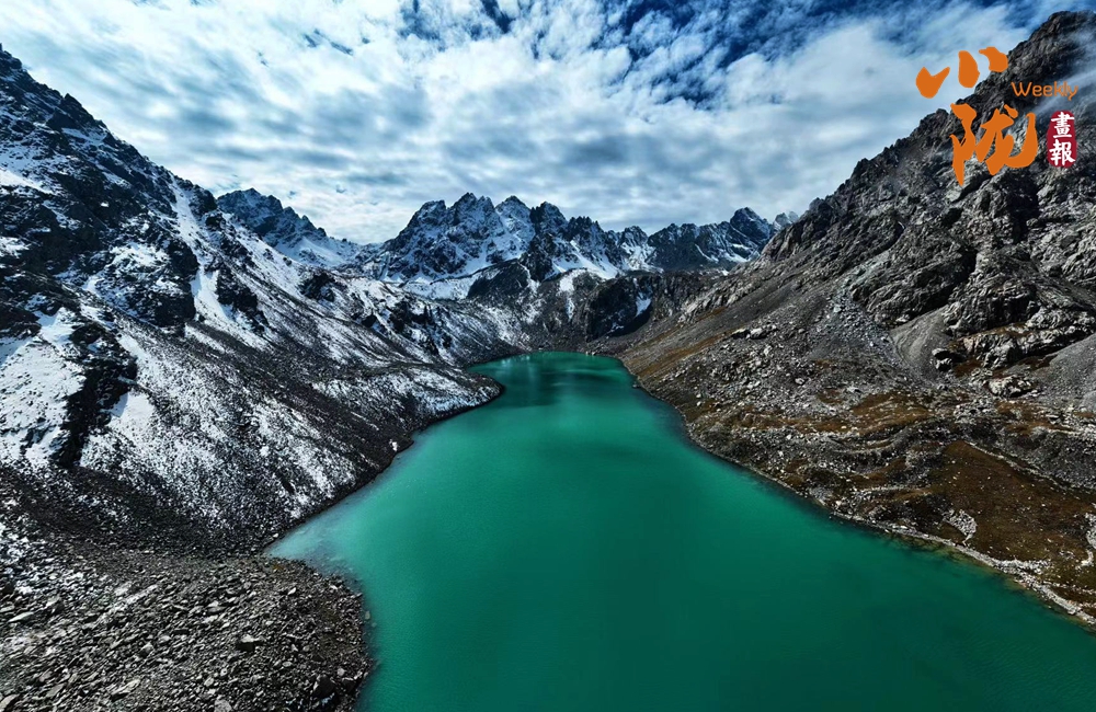柴爾龍海是冰溝河的眼睛,四周雪山擁簇,湖水倒映著藍天和連綿的雪山,異常美麗。